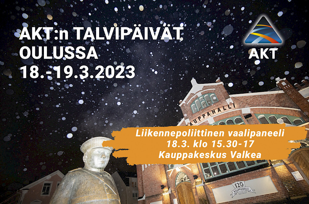 AKT järjestää Talvipäivien yhteydessä liikennepoliittisen vaalipaneelin Kauppakeskus Valkeassa Oulun keskustassa lauantaina klo 15.30-17.00. Tapahtuma on kaikille avoin.
