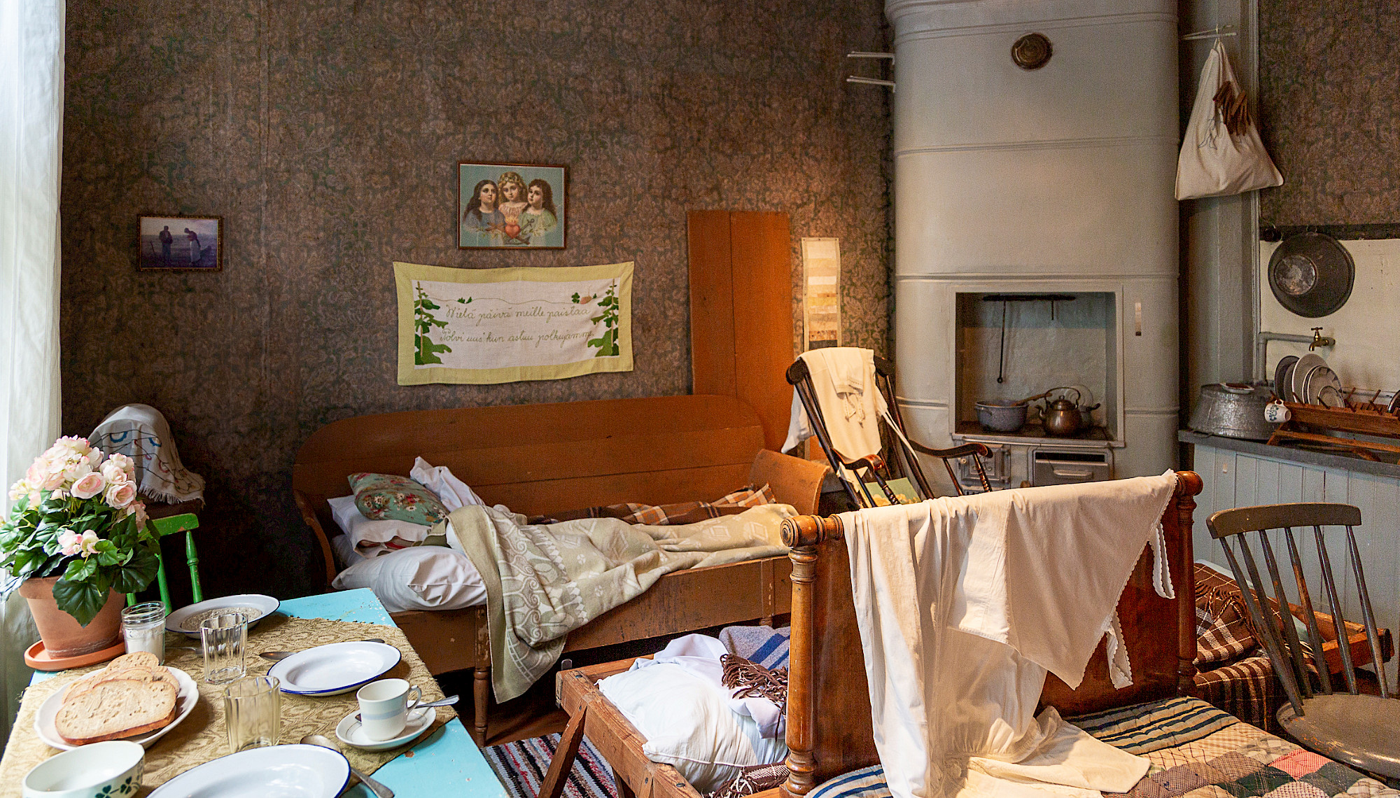 Yhdessä hellahuoneessa saattoi asua jopa kahdeksan henkeä. 1920-luvulla leski ja rakennustyöläinen Agda asusti yhtä huonetta seitsemän lapsensa kanssa. Koti olikin täynnä erilaisia veto- ja pukkisänkyjä, jotka siirrettiin päiväksi pois tieltä.