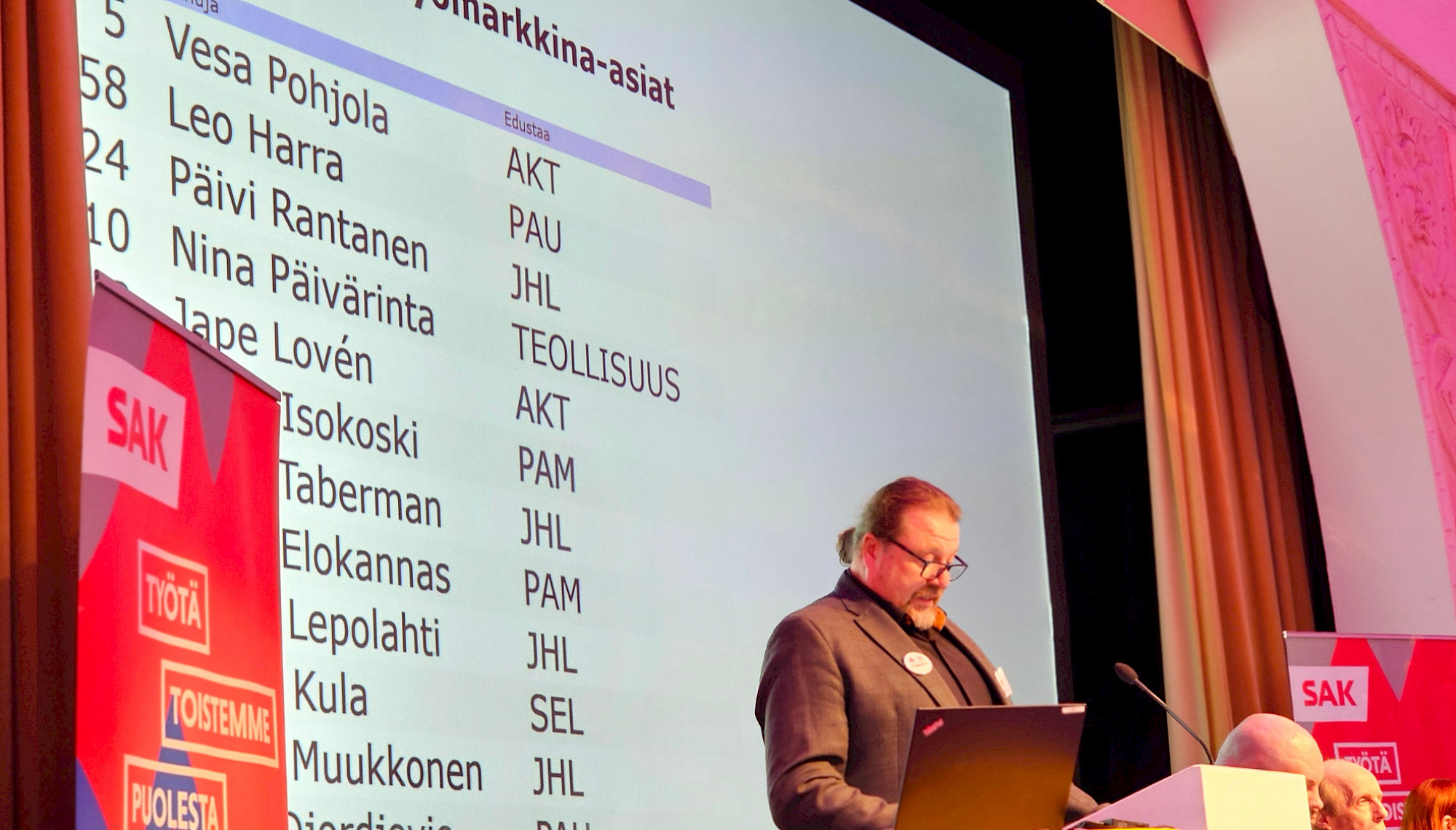 Ahtaaja Vesa Pohjola SAK:n edustajistossa