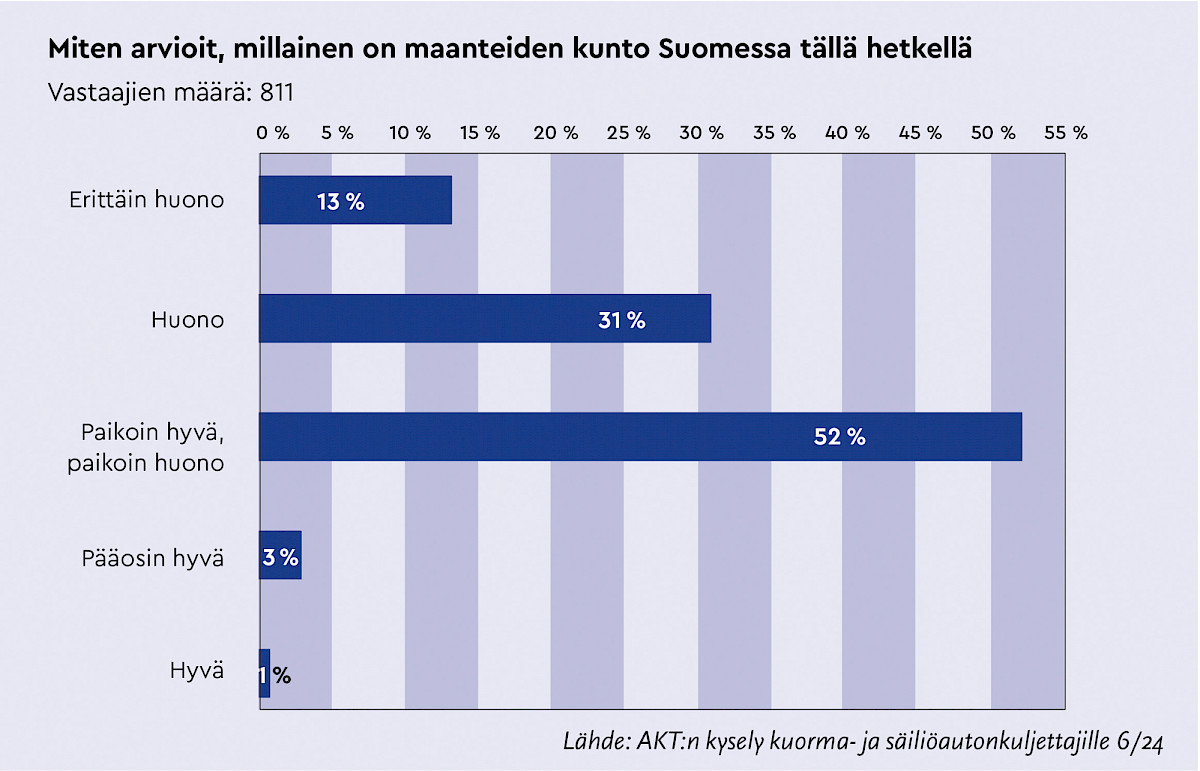 AKT kysyi kuljettajilta teiden kunnosta ja sai vastausvyöryn – Teiden kunto heikentää jo työturvallisuutta