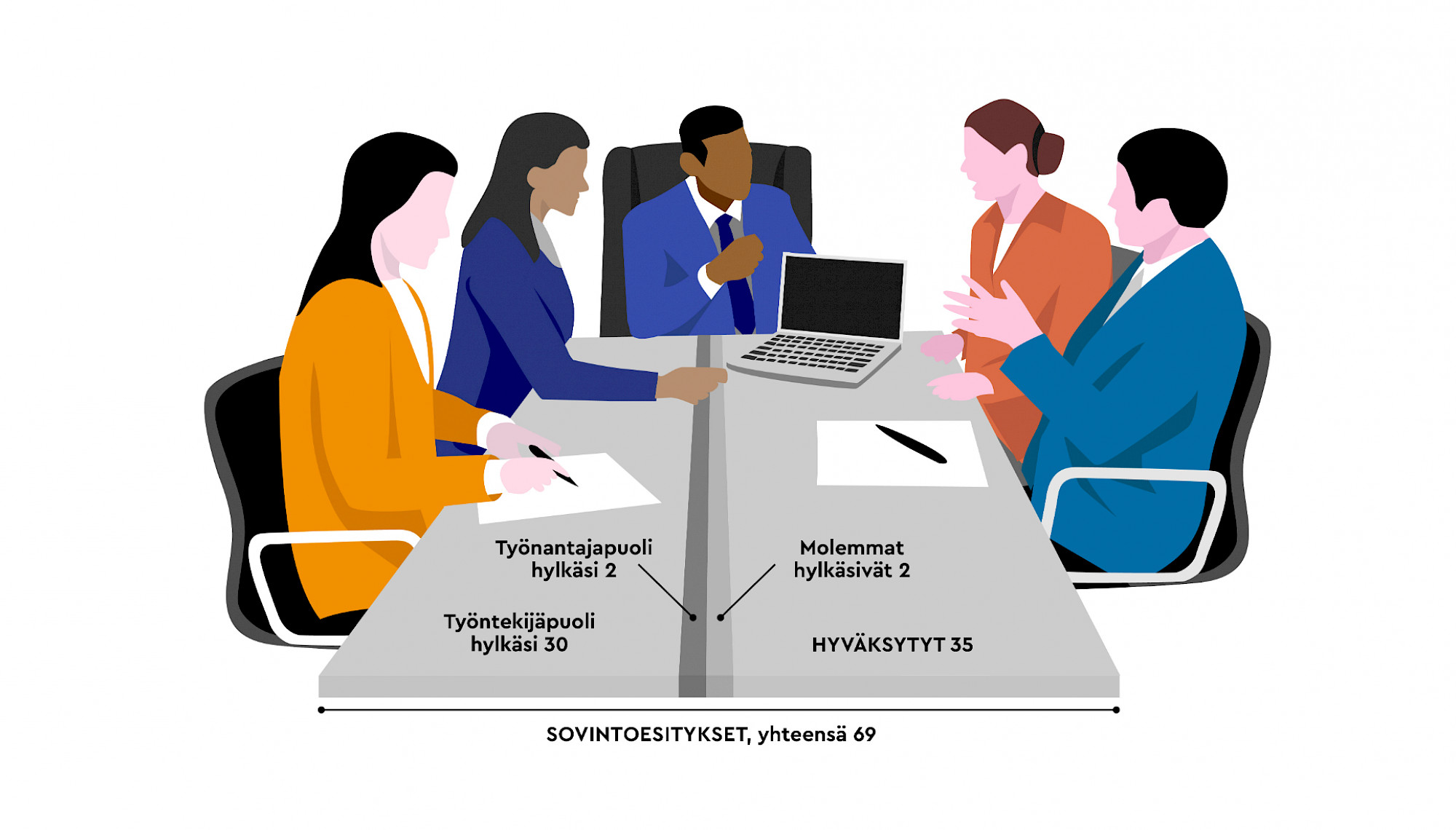 Vain neljä ehdotusta yhteensä 69:stä on ollut sellaisia, etteivät ne ole kelvanneet työnantajien edustajille.