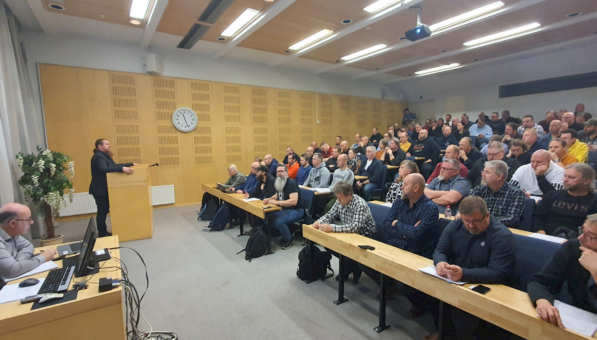 Kiljavan auditorio on ääriään myöten täynnä. Paikalla on reilusti yli sata ay-aktiivia, AKT:n ammattialajaostojen edustajia ja hallituksen jäseniä. Ammattialajaostoja on kuusitoista, ja ne ovat keskeisiä AKT:n tes-prosesissa. Ne käsittelevät mm. neuvottelutuloksen ennen kuin AKT:n hallituksen käsittelyä.