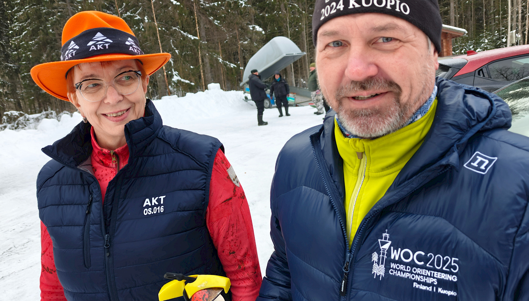 Pilkkijärjestäjät Aarne Keurulainen ja Riitta Heiskanen tilasivat pikkupakkasen ja auringonpaisteen hyvissä ajoin.