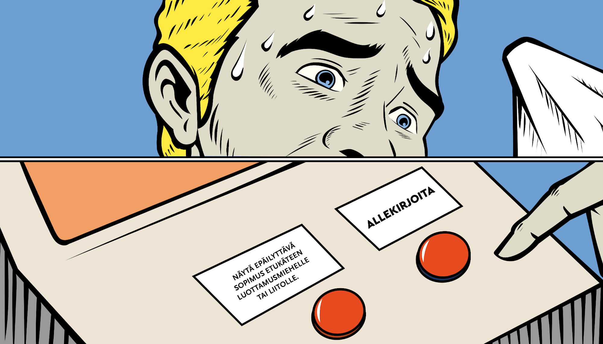Työelämässä esiintyy ”yhteisiä” sopimuksia, jotka osoittautuvat työntekijälle kalliiksi. Näytä epäilyttävä sopimus aina etukäteen luottamusmiehelle tai liitolle.