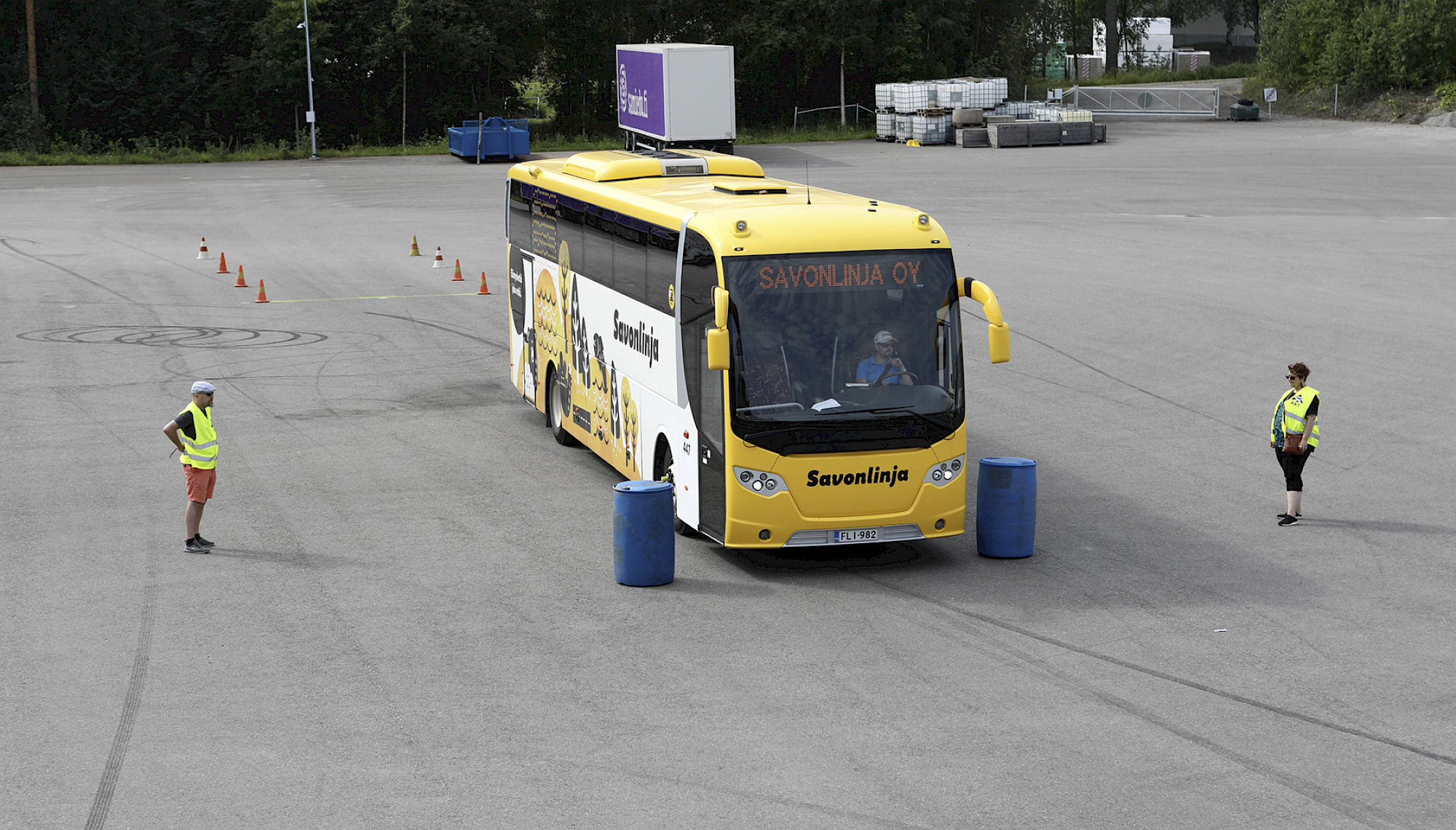 Asfalttikentällä ensi tehtävänä oli arvioida tynnyrien väliin sopiva leveys, josta oma ajoneuvo mahtuu kulkemaan. Ajotarkkuutta testattiin ajamalla rekisterikilpi maahan merkityn tikkataulun yläpuolelle napakymppiin. Paikka jää piiloon eli arvion varaan, vaikka peili tuulilasin yläpuolella auttaakin. Peruutettu takaetäisyys osoittautui kilpailijoille liki haastavimmaksi. Moni ajoi lähelle ja sitten vielä hieman lisää – törmäten puomiin ja virhepisteille. Se on se kuljettajan ”jos mä vielä vähän”, nauroivat kilpailijat itselleen. Lopuksi arvioitiin viiden metrin suojatie-etäisyys auton eteen. Neljällä tehtävällä saatiin kilpailijoille selkeät erot.