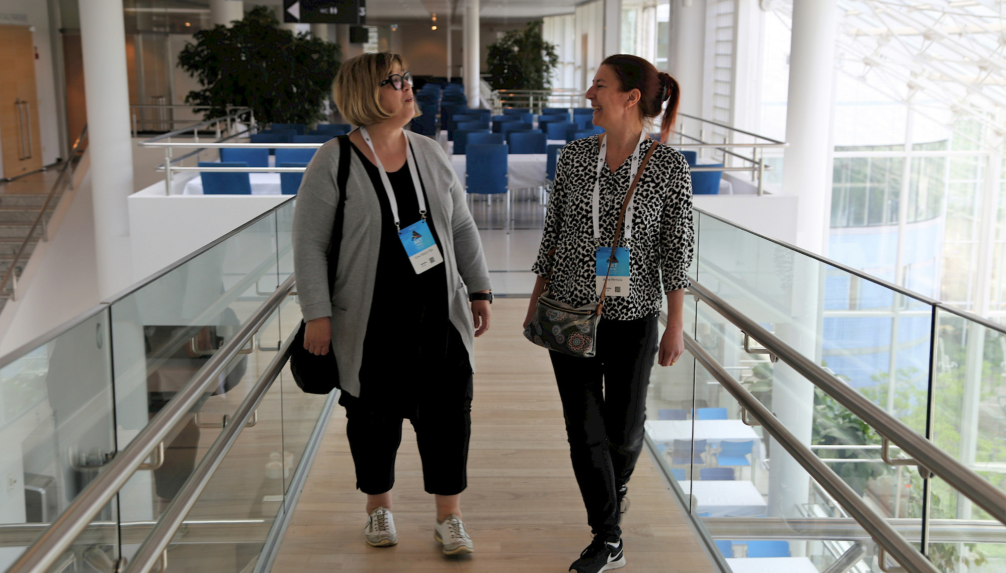 Uusi puheenjohtajista on juuri valittu. Kokoussalissa päätökset syntyivät yksimielisesti edellispäivän ryhmäkokousten äänestystulosten perusteella. Liikematka-asiantuntijat Kirsi-Marja Vilja Hämeenlinnasta (vasemmalla) ja Anne Perttula Helsingistä ovat päätöksiin tyytyväisiä.