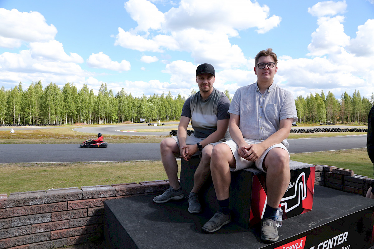 Kuopiolaiset linja-autonkuljettajat Atte Haapala ja Juuso Hulkkonen jatkoivat pohdiskelua kartingin ja ammattiajon yhtäläisyyksistä.