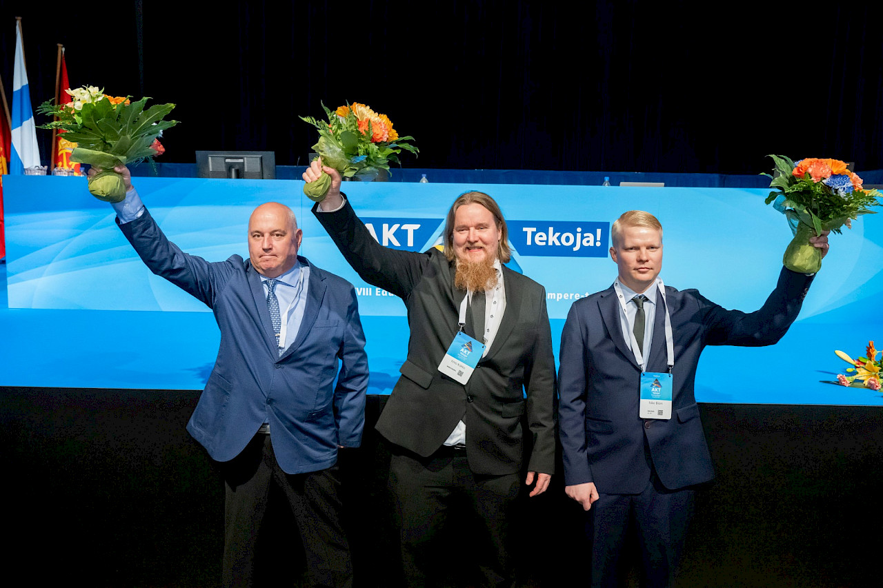 Vasemmalta AKT:n 1.Varapuheenjohtaja Jarkko Arpula, puheenjohtaja Ismo Kokko ja 2.varapuheenjohtaja Niko Blom