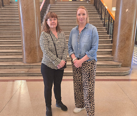 Valtuutetut Marjo Ormaa ja Heidi Westerholm iloitsevat matkustamohenkilöstölle saavutetusta neuvottelutuloksesta. Matka oli pitkä mutta lopputulos hyvä.