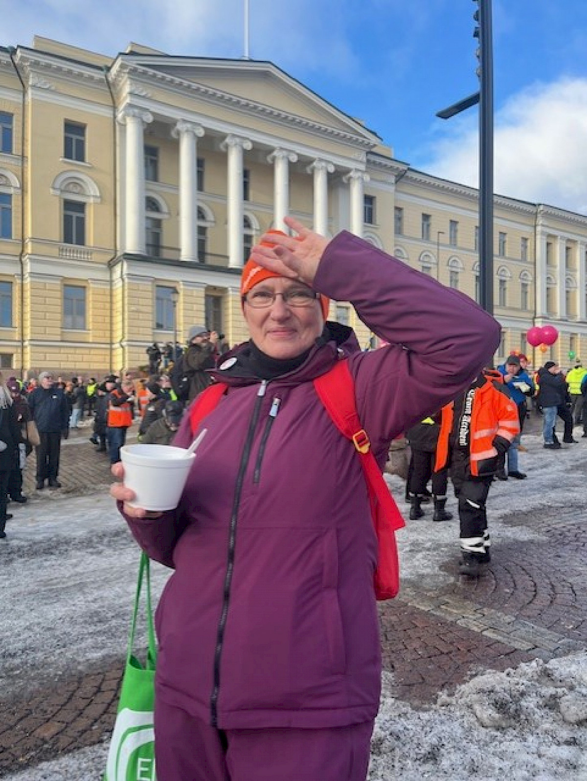 Pitkän linjan maililainen, nykyään jo eläkeläinen, Hannele Temonen, osallistui eilen elämänsä ensimmäistä kertaa mielenosoitukseen. Hän matkusti Senaatintorille bussilla Loimaalta ja totesi, että kyllä kannatti.
