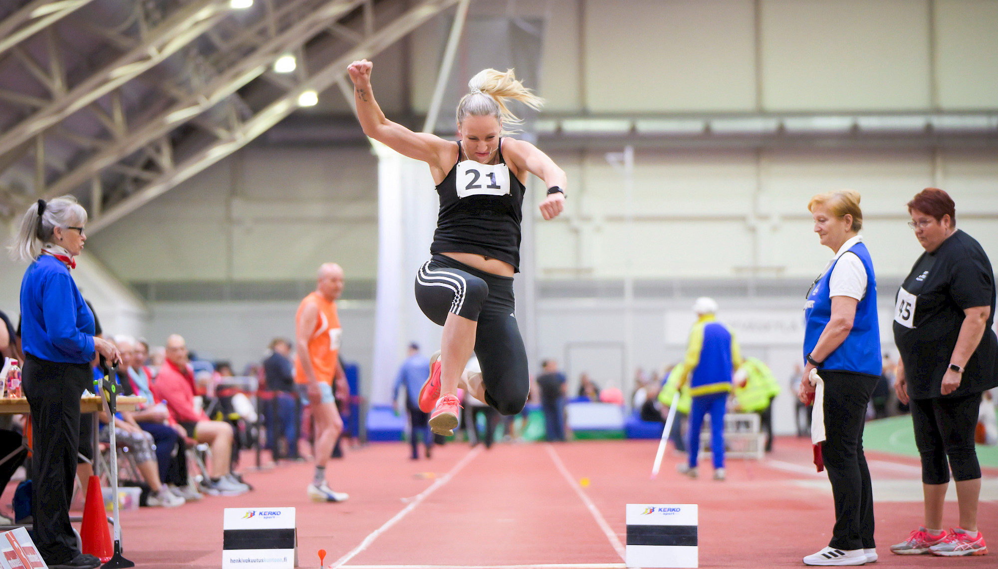 Jyväskylän Hipposhallissa AKT:n kesäkisojen yleisurheilun starttasivat 60 metrin pikamatkat. Vauhdikkaat konkarit olivat ensimmäisinä viivalla. Ensikertalaisetkin viihtyivät mukana menossa.
