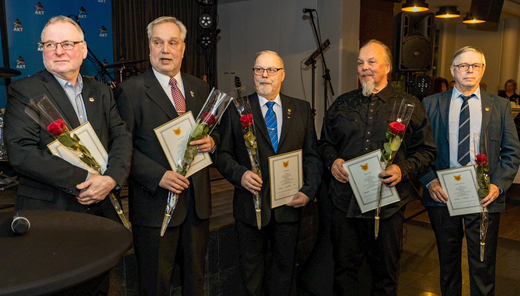 AKT jakoi tilaisuudessa liiton kultaiset ansiomerkit kuudelle ansioituneelle jäsenelle. Yksi heistä oli helsinkiläinen Arto Sorvali.