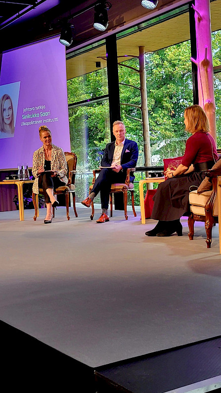 SAK:n Tulevaisuus Tänään läksi lentoon ulkopoliittisen instituutin johtavan tutkijan Sinikukka Saaren analysoidessa kansainvälistä tilannetta. Koko Eurooppa on paineessa, USA yrittää vaikuttaa eri maiden sisäpolitiikkaan. Samaan aikaan Kiinan, Brasilian ja Intian isompi rooli maailmassa kasvaa.