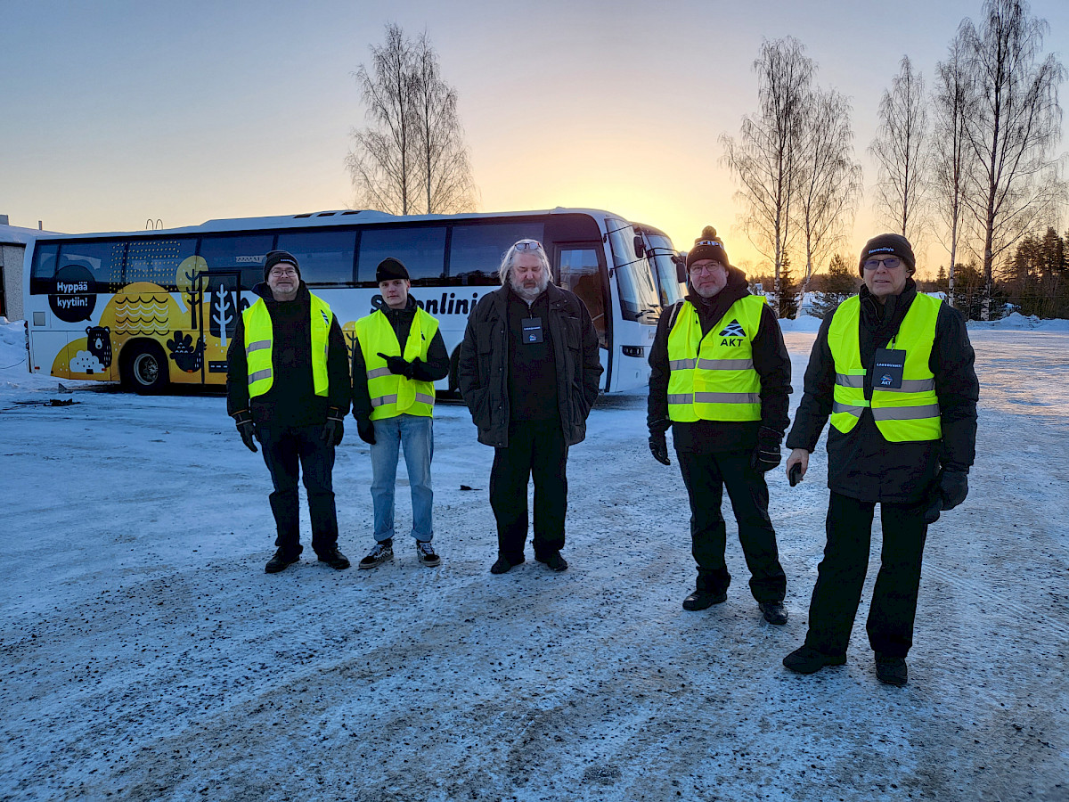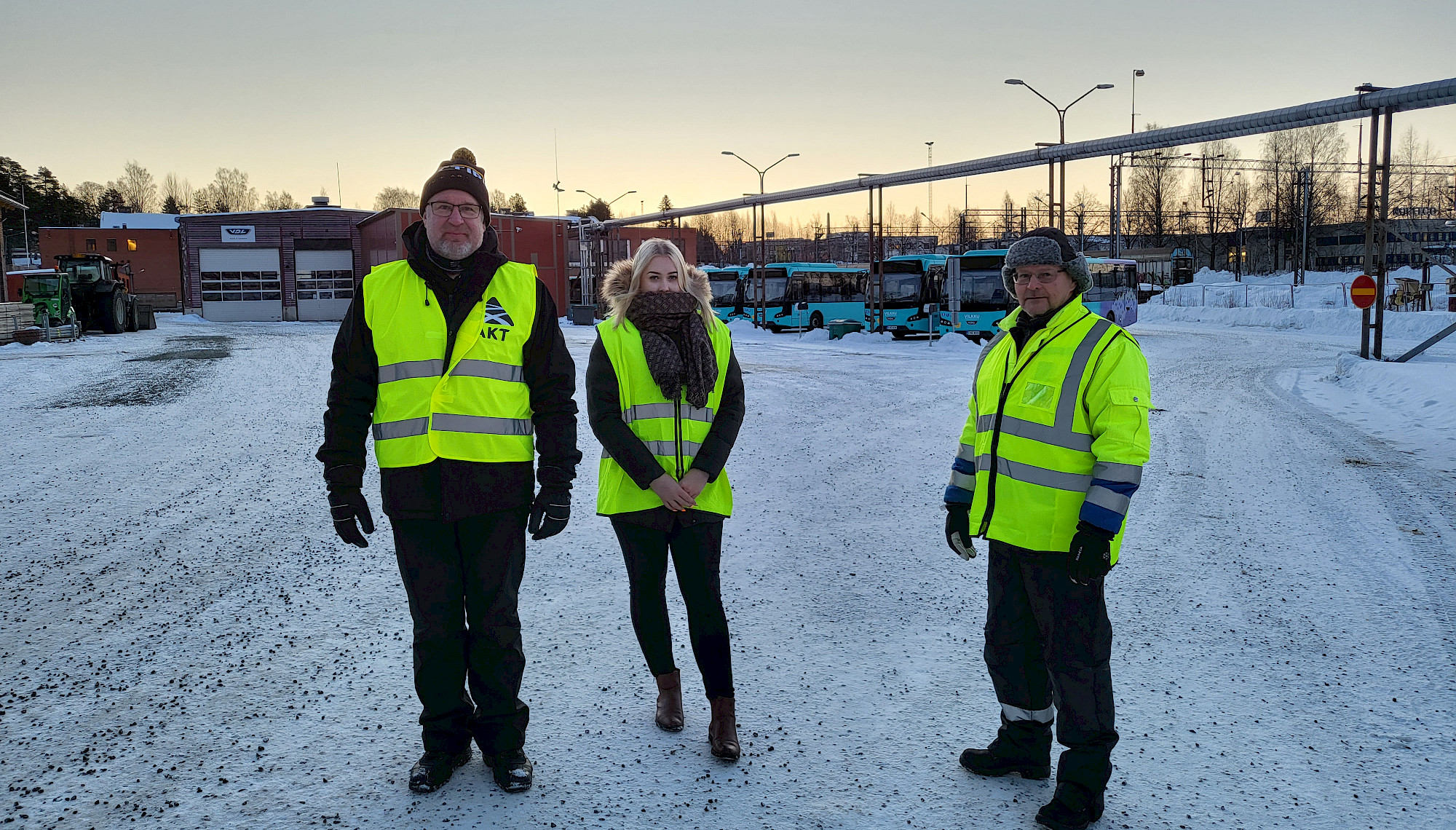 AKT:n Kuopion osaston puheenjohtaja Hannu Turunen, Lotta Vatanen ja Pohjolan Liikenteen luottamusmies Kauko Lipponen.
