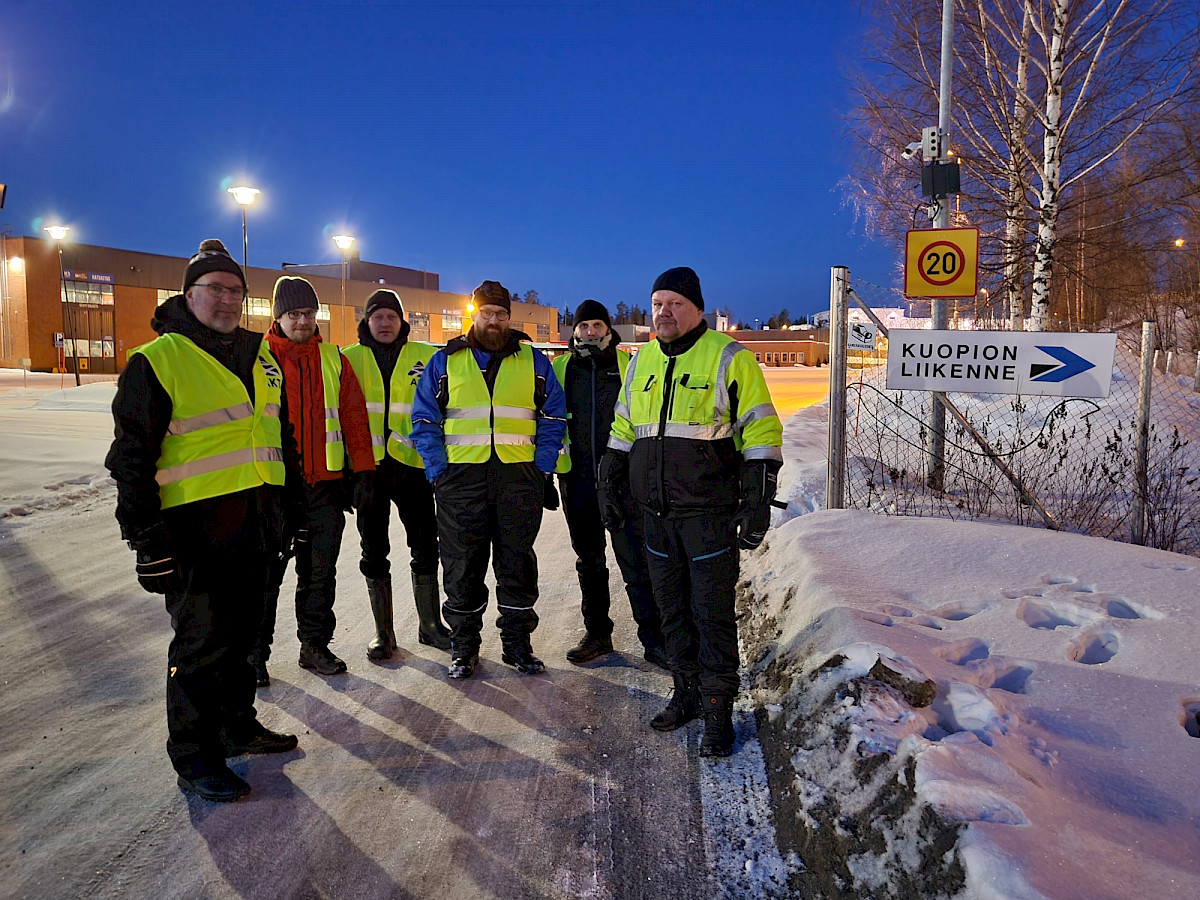 Kuopion Liikenteen, Savonlinjan ja Pohjolan Liikenteen porteilla on iloinen tunnelma. Linja-autoliikenne on lähes täysin pysähtynyt; lakko pitää. Kuopiossa ollaan valmiita istumaan, niin pitkään kuin on tarvetta, jotta työehtoihin saadaan tarvittavat parannukset.