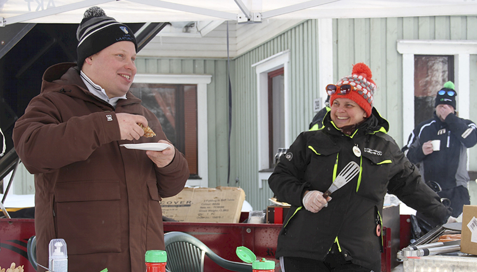 Osaston puheenjohtaja Janne Vähäkuopus sekä kilpailujen toinen puuhanainen Annika Aikio.