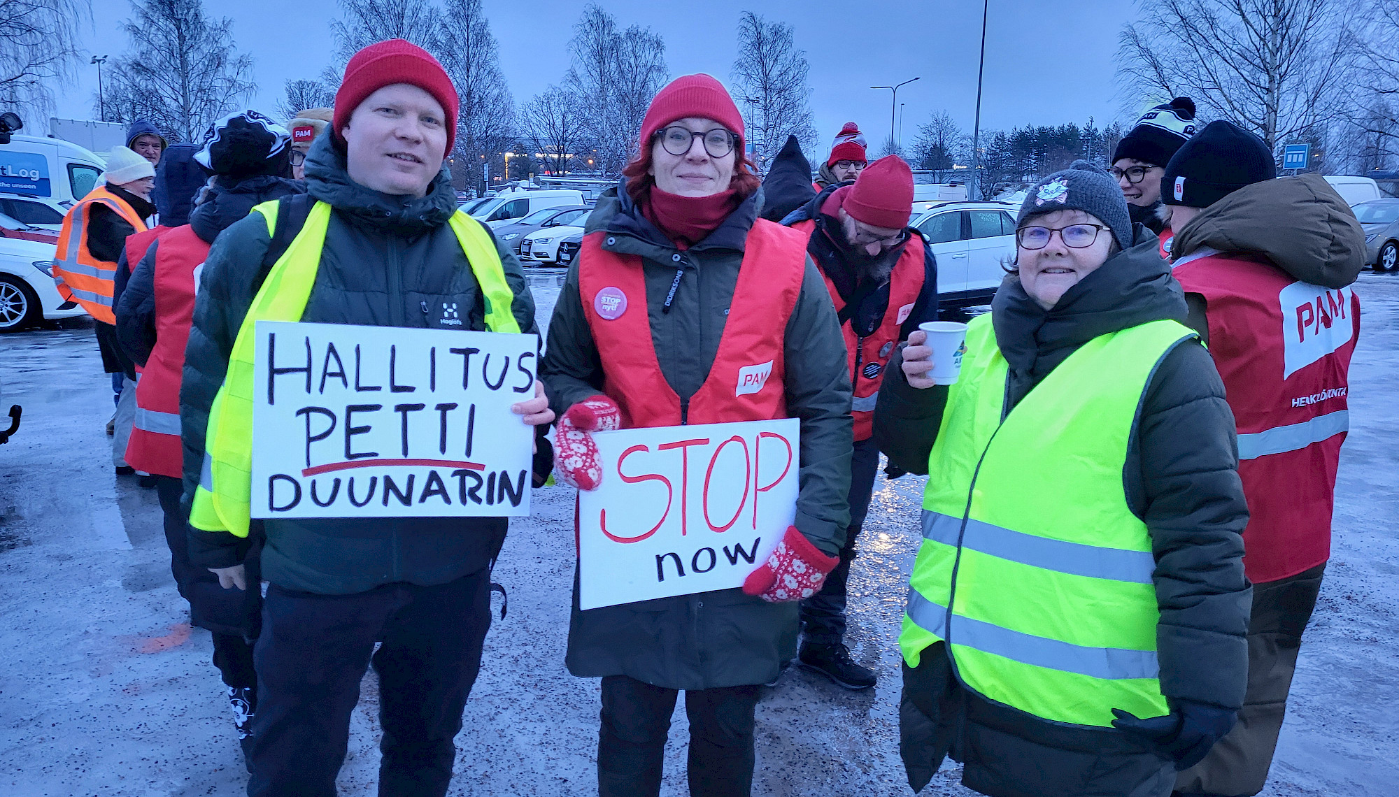 Liitot pahoittelevat matkustajille aiheutunutta harmia. Hallituksen työelämäheikennykset ja sosiaaliturvan leikkaukset ovat niin kestämättömiä, että työntekijät haluavat reagoida. Lentoala on hyvin suhdanneherkkä ala. Työttömyysturvaleikkaukset ja lomautuskäytäntöjen muuttaminen vaikuttavat todella nopeasti.