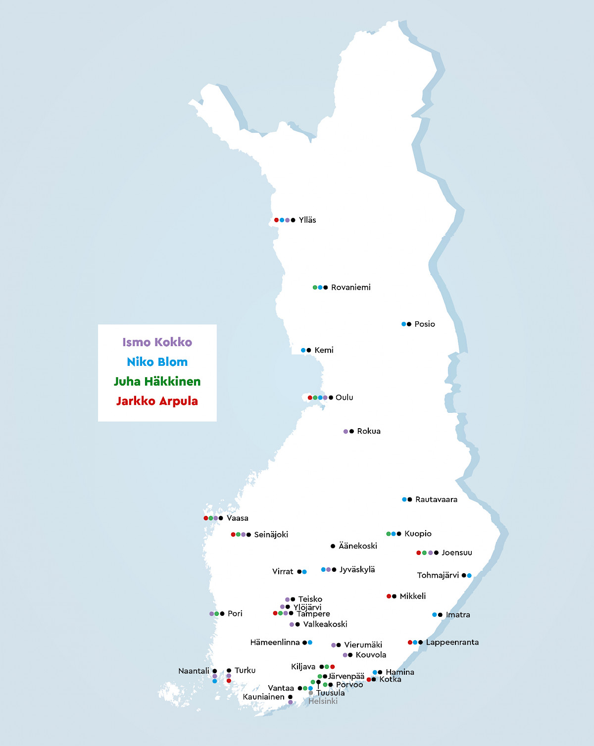 Mukana tällä kartalla ovat AKT:n puheenjohtaja Ismo Kokko, liiton 1. varapuheenjohtaja Jarkko Arpula sekä 2. varapuheenjohtaja Niko Blom. Heidän lisäkseen on mukana järjestöpäällikkö Juha Häkkinen. Eri paikkakuntien tapahtumiin osallistuu toki muitakin AKT:n työntekijöitä.