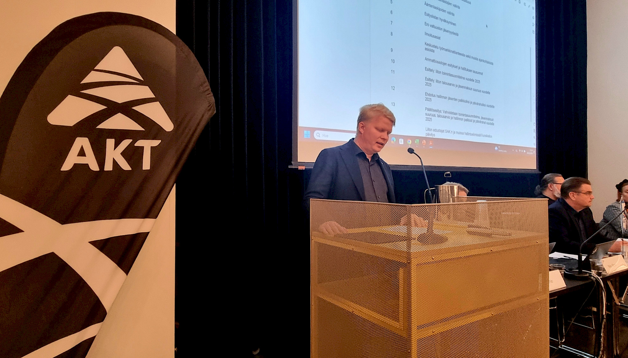 - Meitä haastetaan tällä hetkellä kovaa monesta suunnasta. Meidän ja koko ammattiyhdistysliikkeen haasteena on muun muassa järjestäytymisaste ja maan hallitus, joka tekee työntekijävihamielistä politiikkaa. Yhdessä me voimme vaikuttaa siihen, että nämä haasteet selätetään, AKT:n 2. varapuheenjohtaja Niko Blom sanoi AKT:n syysvaltuustossa.