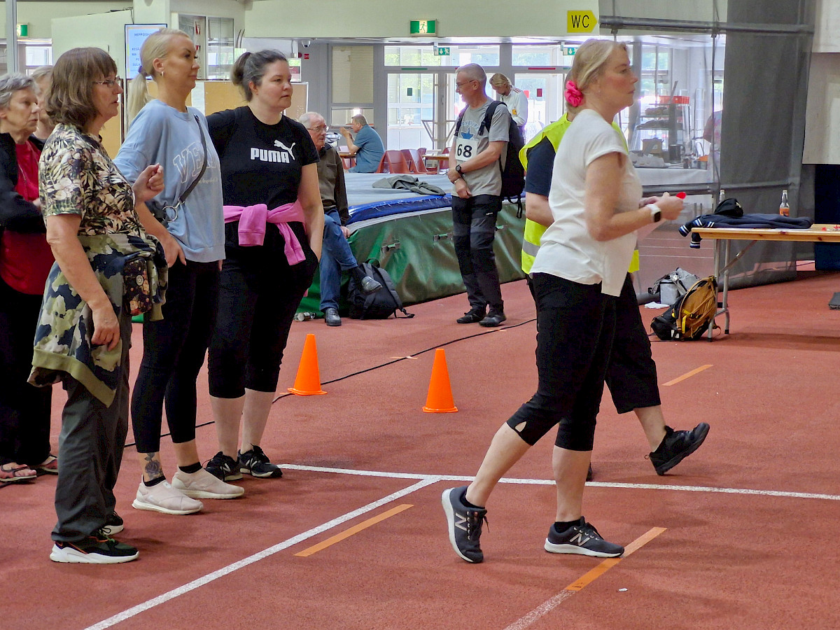 Kisapaikalla heti aamusta olivat harjoitusheittoja tekemässä Hannele Temonen ja Marja Ikonen. He kertovat polkeneensa polkupyörällä kisapaikalle ja koska pyörä oli huono, tämä kävi hyvinkin lämmittelystä.
