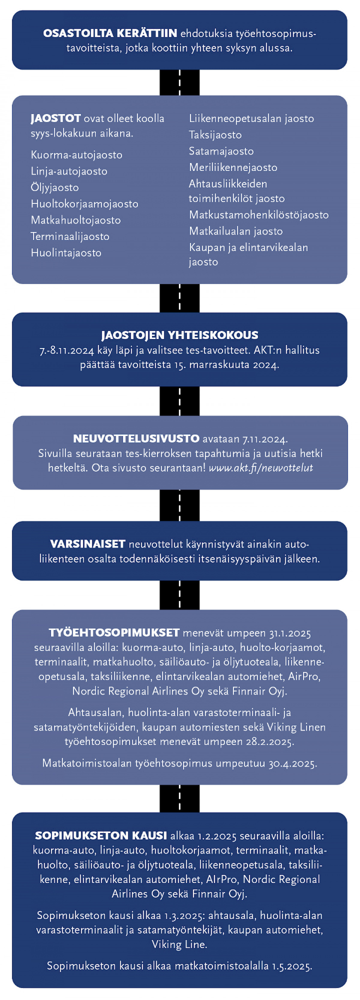 Oikeastaan tes-kierros on jo vauhdissa. Tes-tavoitteita on valmisteltu osastoissa ja käyty läpi jaostoissa. AKT:n nettisivuille tuleva neuvottelusivusto on rakennettu liki valmiiksi. Jaostojen yhteiskokous on kutsuttu koolle. Tes-kierrokseen valmistaudutaan lisäksi työpaikoilla. On olennaisen tärkeää saada mahdollisimman moni jäseneksi.