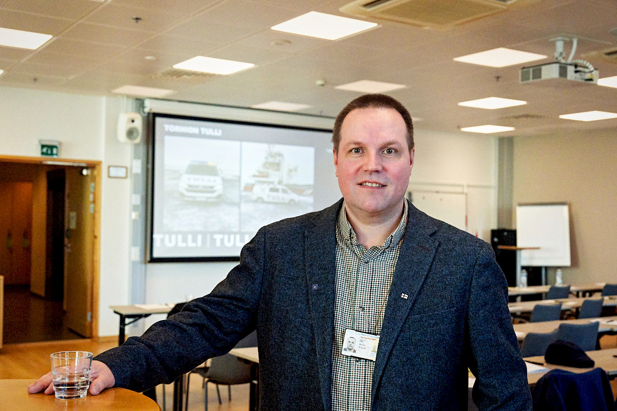 Tulliylitarkastaja Timo Siivola esitteli lauantain ensimmäisessä puheenvuorossa tullin toimintaa. Tornio-Haaparannan rajalla työskentelevä Siivola korosti, että Ruotsin rajalla tullin toiminta poikkeaa paljonkin esimerkiksi Helsingin ja Turun tulleista.