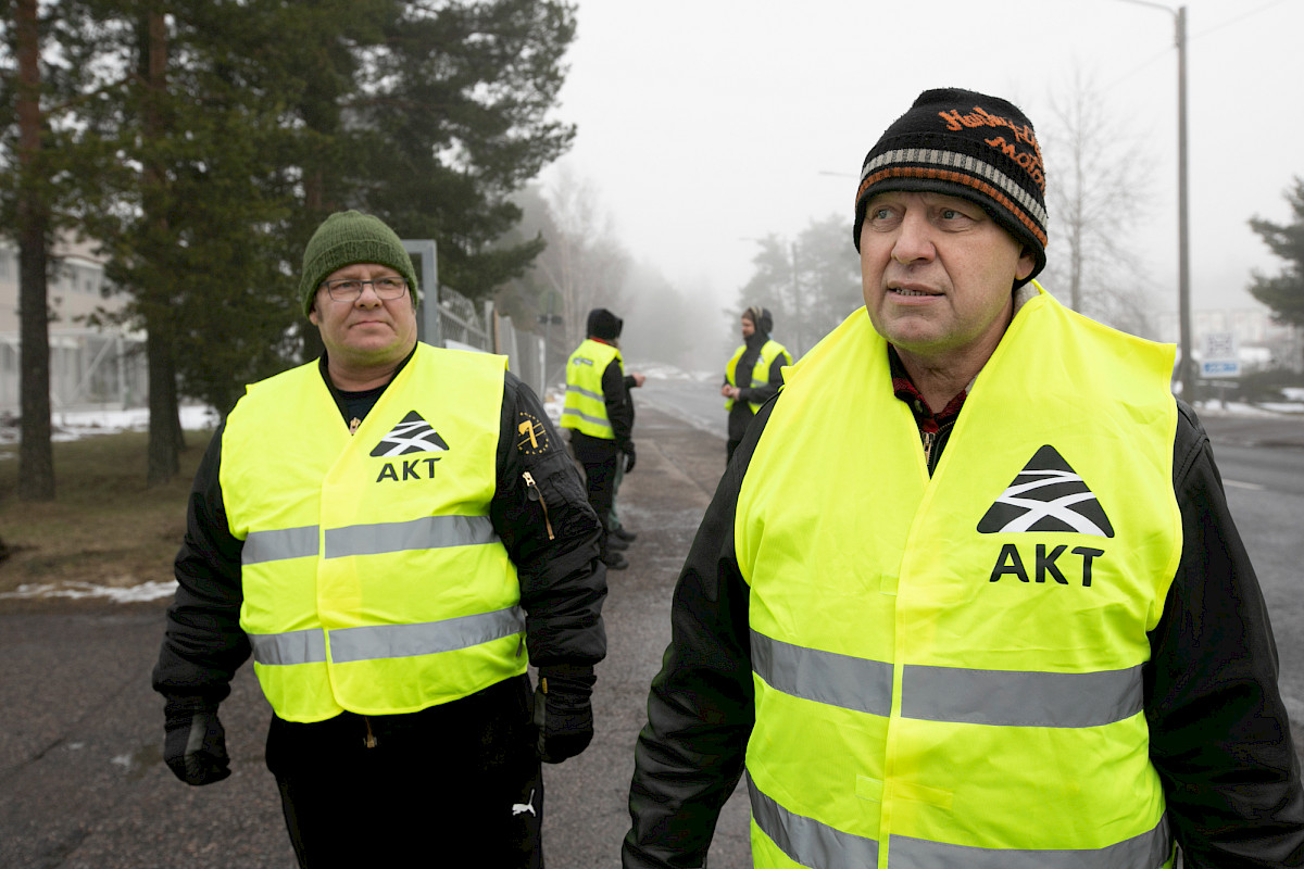Ympäristöhuoltoalan yritys Remeon Vantaan toimipisteessä ensimmäiset lakkovahdit tulivat paikalle puoli viideltä aamulla. Rivit ovat pitäneet ”yllättävän hyvin”, arvioivat pääluottamusmies Jyrki Tyry ja varapääluottamusmies Pekka Ryynänen.