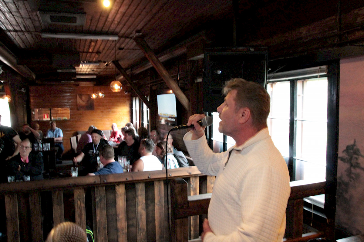 Eikä menoa haitannut vaikka karaokekisa pääsi alkamaan kolmevarttia aikataulusta myöhässä. Kaikki 24 ilmoittautunutta laulajaa olivat huolella valmistautuneita. Yleisökin viihtyi, villiintyi välillä komppaamaan ja laulamaan kuorossa mukana.