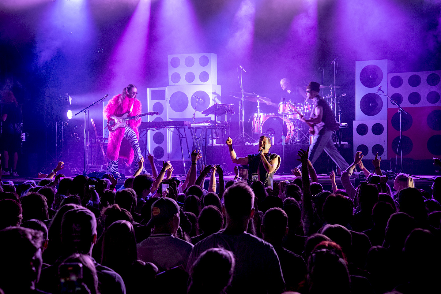 Olavi Uusivirta yhtyeineen tunnetaan heittäytyvän energisistä keikoistaan.
