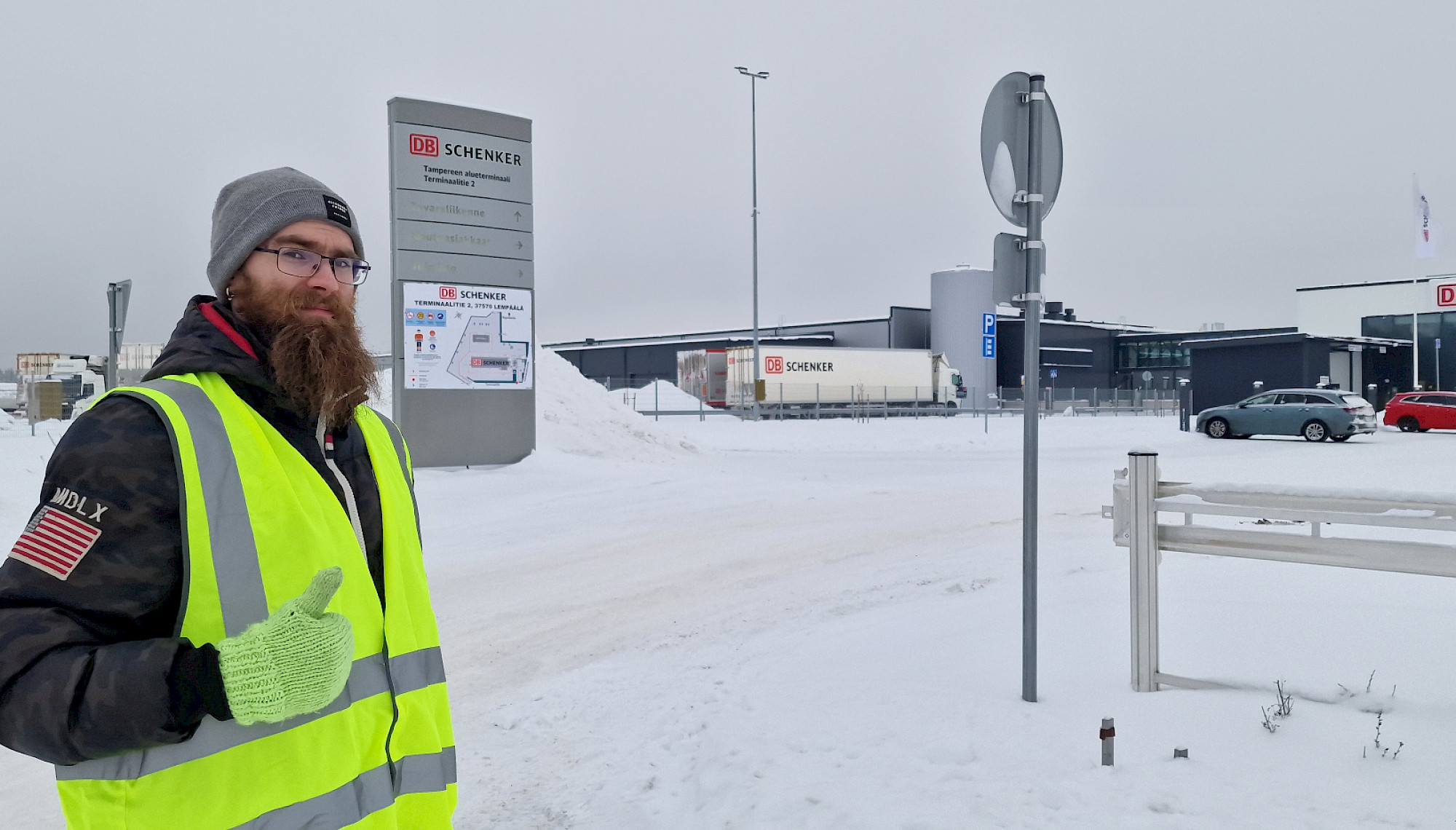 Neljän asteen pakkasessa Schenkerin Lempäälän terminaalissa päivystänyt Joni Hagelin kuvaa Orpon-Purran hallituksen esityksiä ala-arvoisiksi.