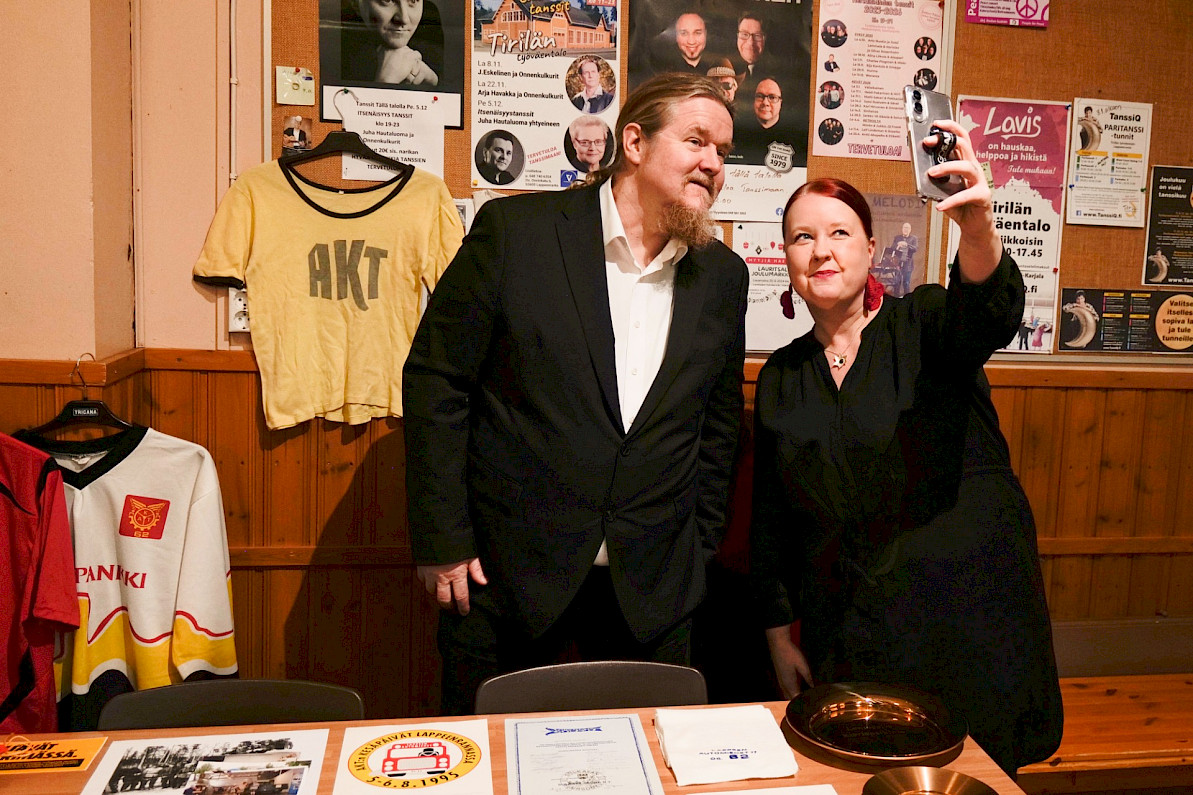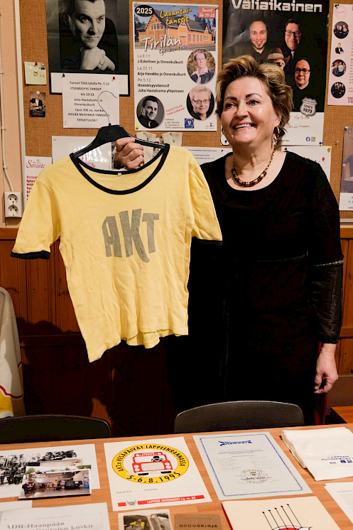 Tirilän Työväentalon aulassa narikkamiehet ovat valmiina. Aulaa komistaa näyttely Lappeen Automiesten 90-vuotisesta historiasta aina nykyhetkeen AKT Etelä-Karjalan osastona. Osaston historia on täynnä niin jämäkkää edunvalvontaa kuin reipasta urheilumeininkiä.
