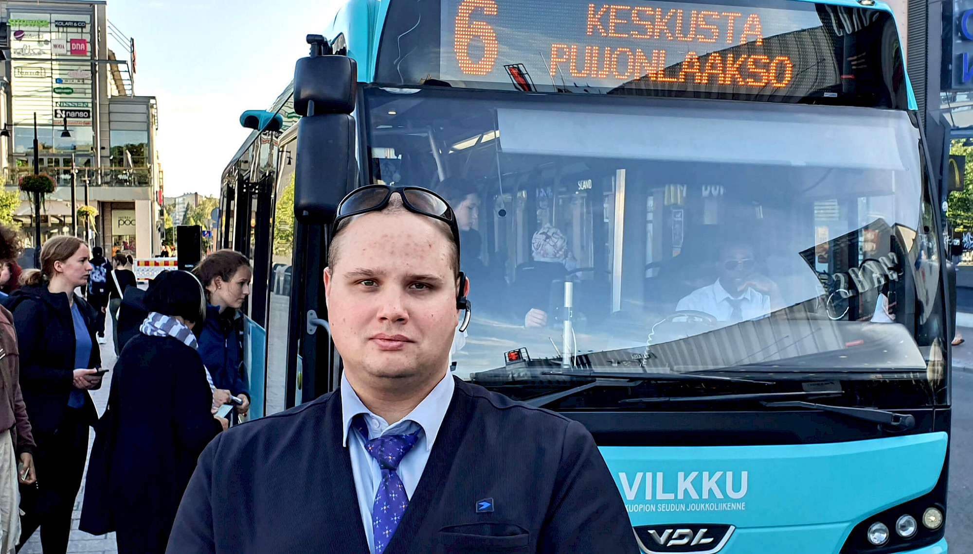 Kolmikymppinen Risto Holopainen ajaa linja-autoa Kuopiossa ja pitää AKT:n verkkolehdessä Linja-autonkuljettajan videoblogia.