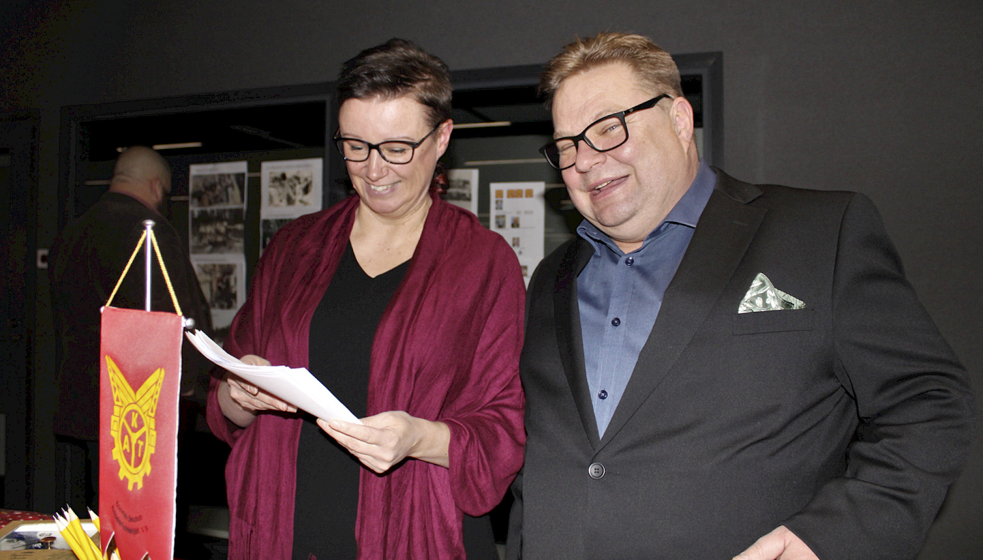 Kouvolan Autoalantyöntekijät Osasto 33:n sihteeri Satu Nylander ja rahaston- hoitaja Vesa Manninen juhlistivat iloisella mielellä oman osastonsa 70-vuotispäivää.