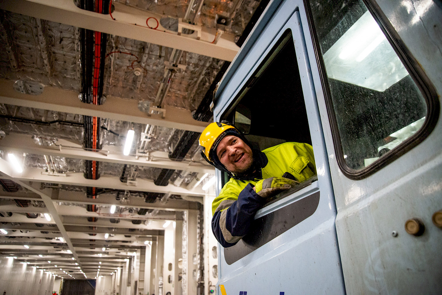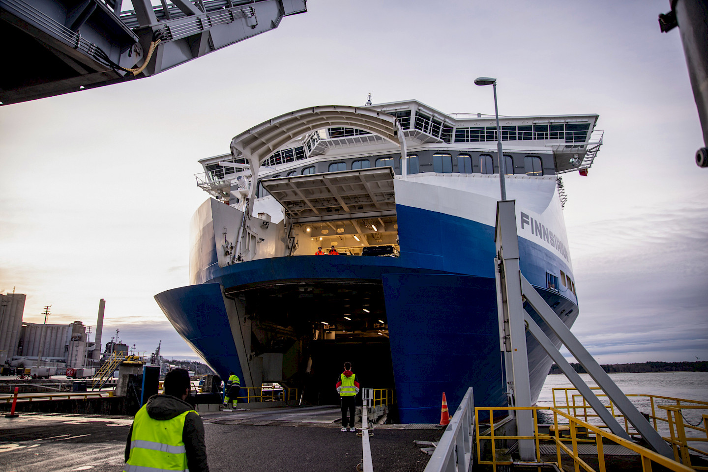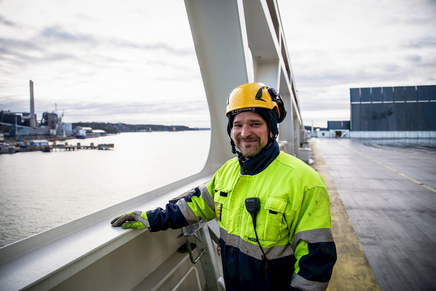Kello 6.30 Ville Heleniuksen työvuoro alkaa, ja vain puolisen tuntia myöhemmin Finnlinesin Finnsirius-autolautta saapuu Naantalin satamaan.