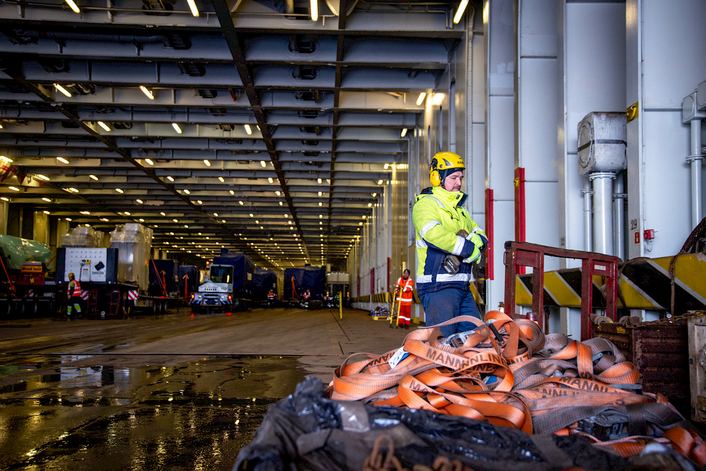 Rekat vyöryvät autokannelta maihin, hyttisiivoojat säntäilevät toiseen suuntaan ja ahtaajat valmistautuvat omaan tehtäväänsä.