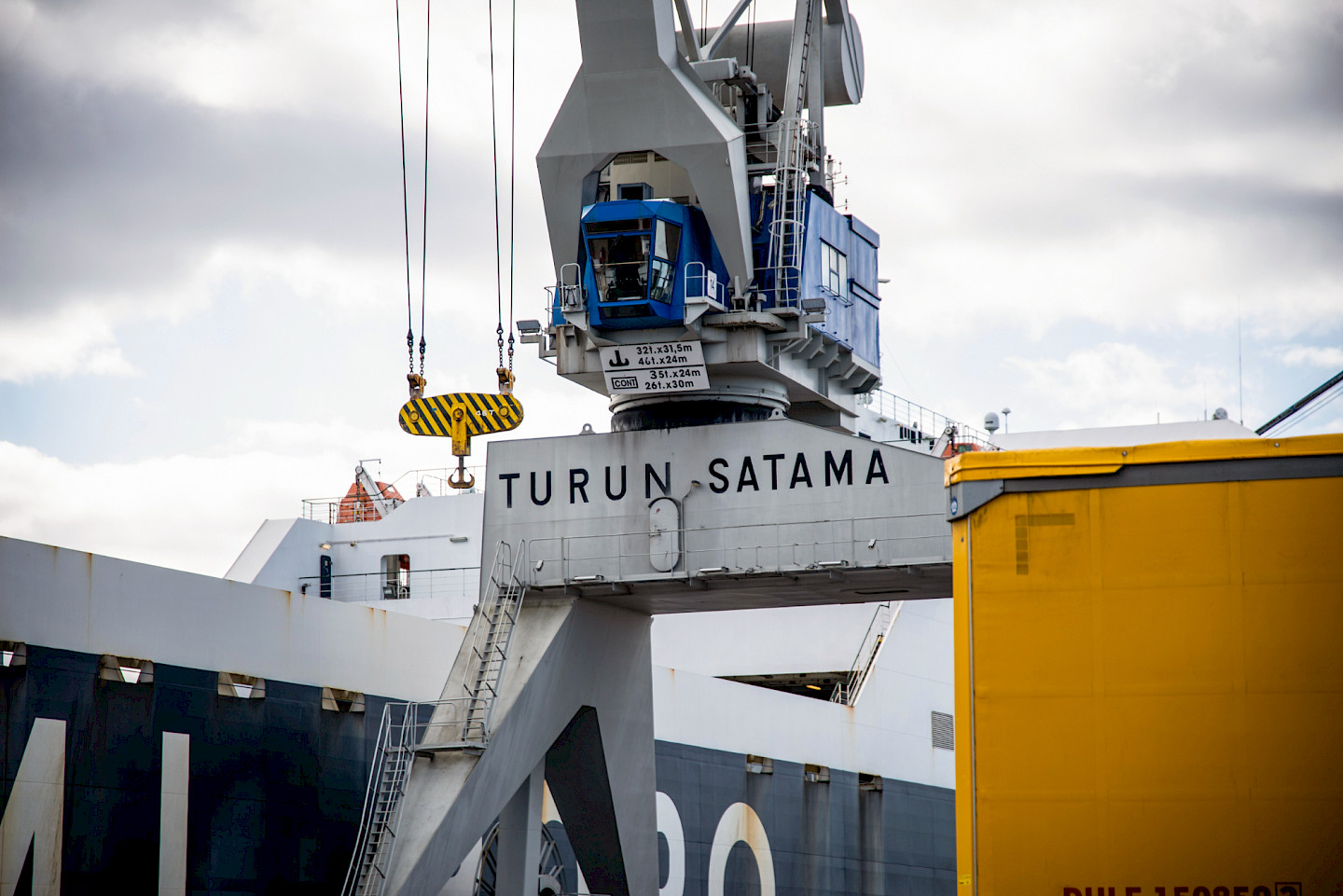 Lounastauon jälkeen Helenius siirtyy Turun satamaan lastaamaan Italian lipun alla seilaavaa rahtilaiva MS Freyaa.