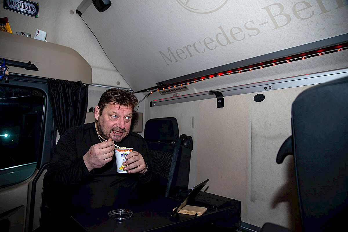 – Onhan se haasteellista hommaa, jos on vaikka pieniä lapsia. Oma perhe-elämä oli nelivitosena jo siinä mallissa, ettei se tuottanut mitään ongelmia. Myös nykytekniikka tekee kaiken helpommaksi. Eihän täällä rekan hytissäkään koskaan olla yksinään. Perhesuhteita voi hoitaa vaikka videopuheluilla. Tietysti fyysinen koti- ja mökkiasioiden hoito on jäänyt nyt vapaille ja lomille. Tämä homma vaatii vähän erilaisen ajattelutavan, mutta ei tämä pahaa hommaa ole. Kun on syntynyt söpöksi, muttei rikkaaksi, niin pakko on vain töissä käydä.