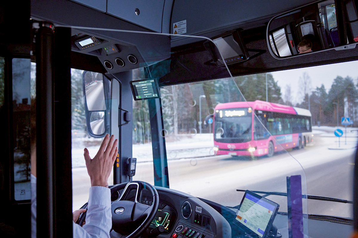 – Voin katsoa siitä asiakkaalle vaihtobussin tai näyttää, missä toiset autot liikkuvat. Toisaalta turvauduin itsekin appiin, kun ajoin ensimmäistä kertaa harvinaisempaa yölinjaa, jonka reitti on eri kuin päivälinjan. Tässä tätä työtä oppii, ja teknologia on hyvä apu, kekseliäs kuljettaja nauraa.