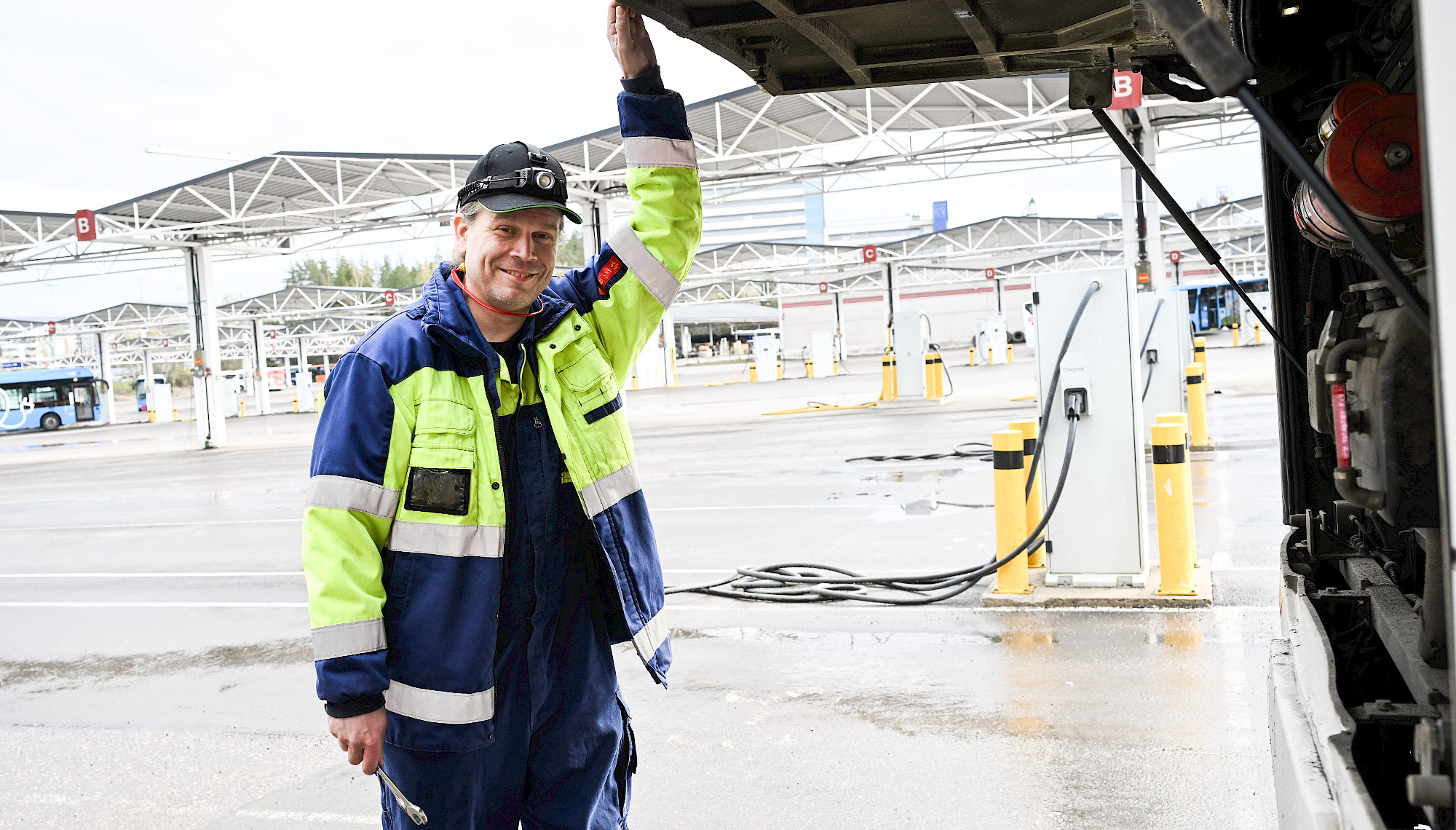 – Kun dieselauto kulkee kaksi senttiä kallellaan vasemmalle, se ei vaikuta rengaskulumaan yhtään. Mutta jos sähkölinja-auton katolla on 2000 kiloa painoa enemmän, niin se kaksi senttiä vaikuttaa rengaskulumaan jo aika paljon, Miettinen valottaa.