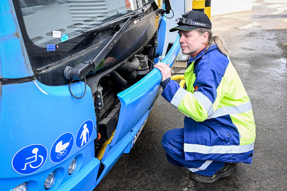 Lainsäädäntö ei tunnista sähköbussien huoltoa jännitetyöksi vaan elää dieselaikaa. Huollon työntekijät saavat valmistajien tarjoaman koulutuksen, lisäksi tarvittaisiin sähköalan tuntemusta. Huollossa korostuu työturvallisuus.