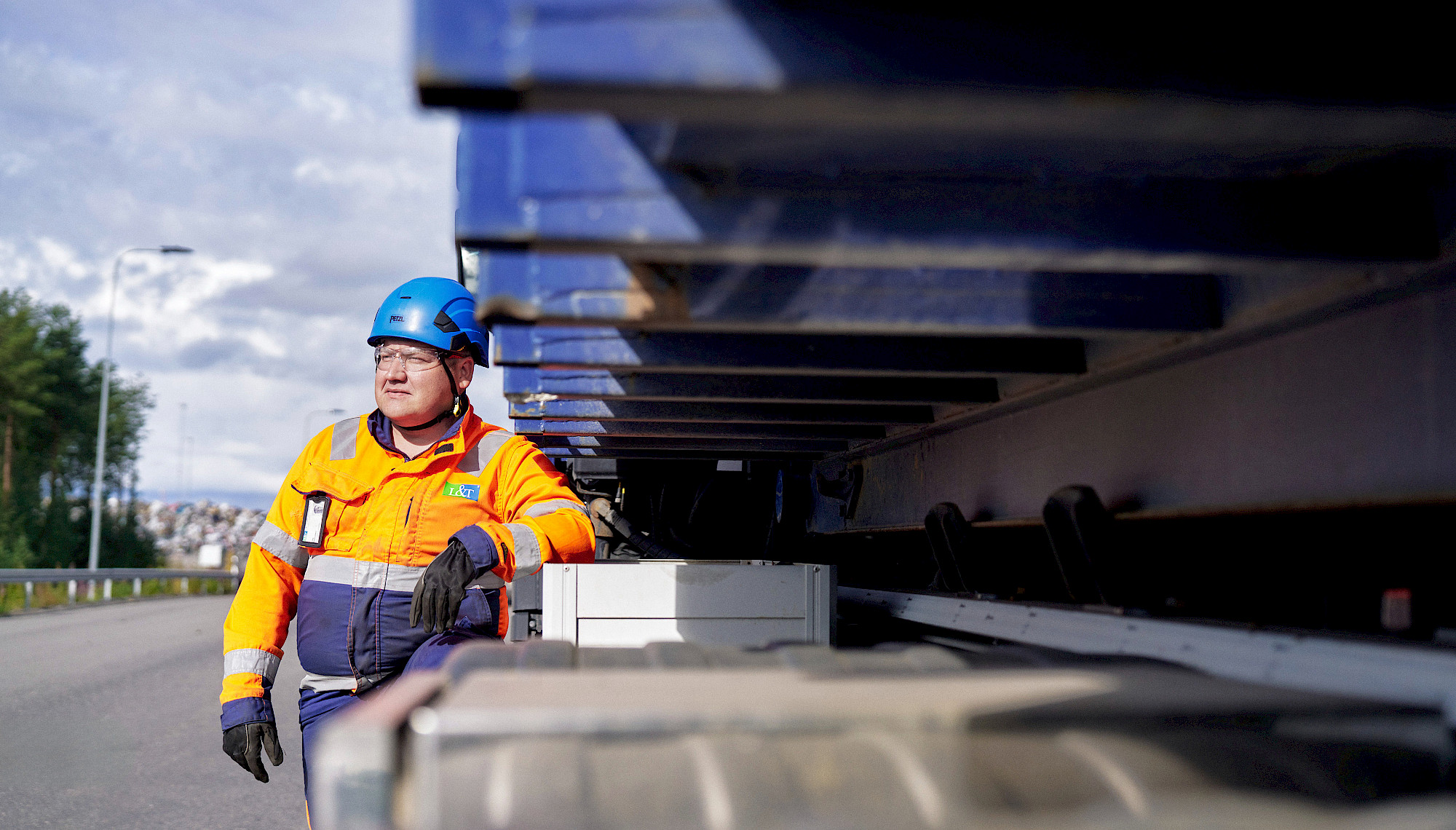 Miettunen ajaa vaihtolava-autoa Lassila & Tikanojalla. Hänen työssään ollaan paljon sellaisilla alueilla, joilla liikkuu kävelijöitä ja pyöräilijöitä. Niinpä hänestä ihan kaikkein tärkeintä uutta turvatekniikkaa ovat kamerat.