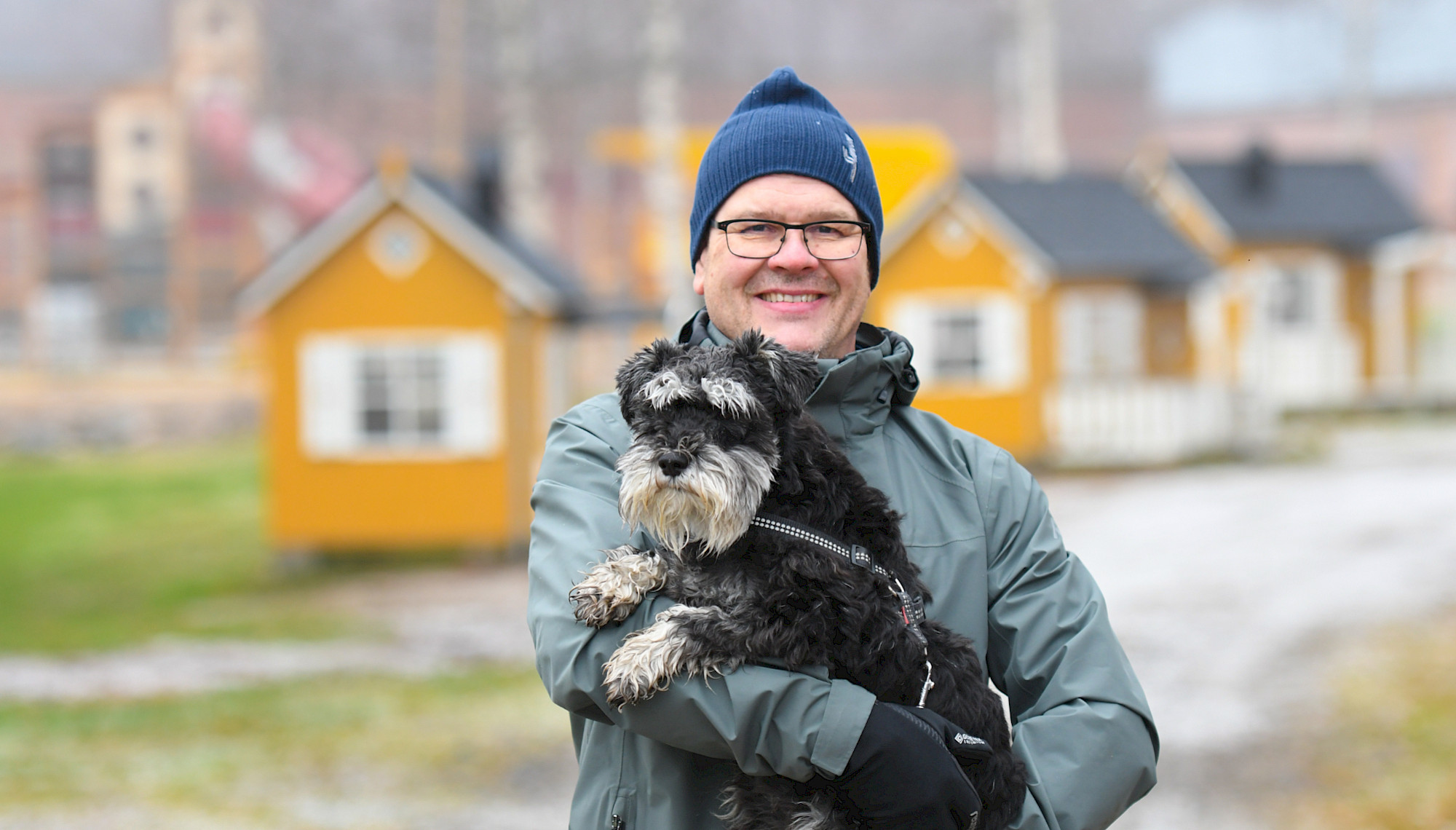 Pääluottamusmies pitää huolta omasta työhyvinvoinnistaan mökkeilemällä, pitkillä kävelyillä Waldo-koiran kanssa sekä tekemällä pihatöitä ja polttopuita.