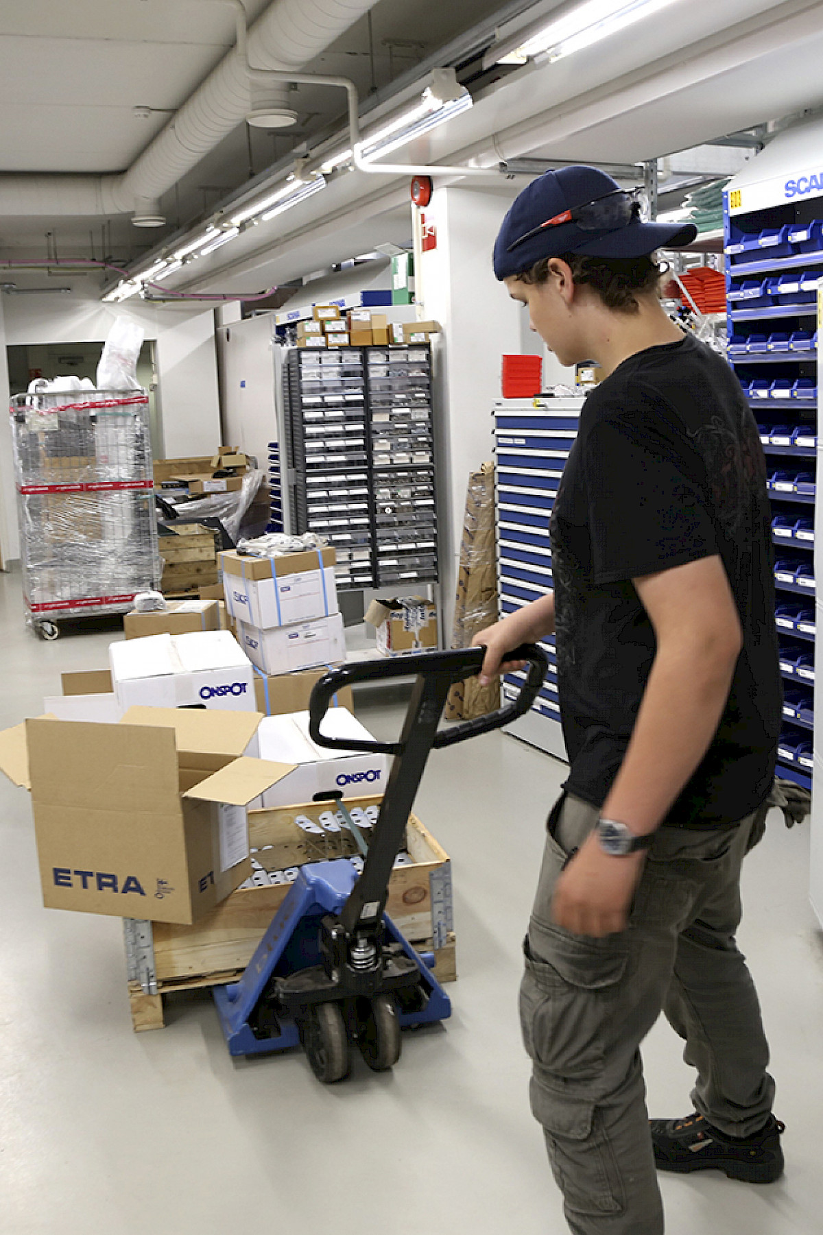 Vaikka työpäivä on vasta toinen, Karhiaho tietää jo hyvin, mitä tehtäviin kuuluu. Hän on ollut samassa yrityksessä ensin tutustumassa työelämään kahdeksannella luokalla ja sen jälkeen kesätöissä joka vuosi.