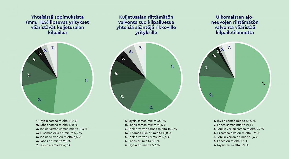 SKAL:n tutkimuksessa kysyttiin mm. liikenteen valvonnasta ja kilpailua vääristävistä tekijöistä. Vastaajien määrä 291. Lähde SKAL & Jouni Juntunen.