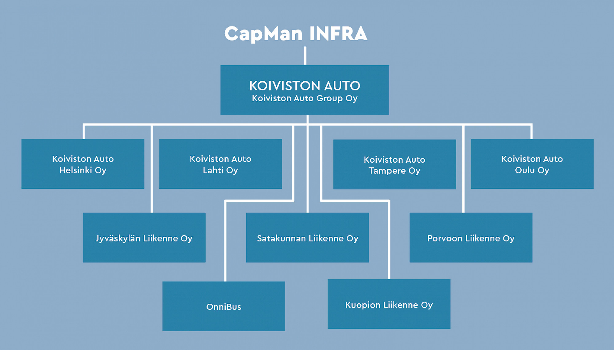 Koiviston Auto -konserniin kuuluu yhdeksän yksikköä, joiden palveluksessa on yhteensä noin 2 600 henkilöä. Heistä linja-autonkuljettajia on noin 2 300 ja asentajia 140. Konsernin liikevaihto viime vuonna oli 203 miljoonaa euroa ja liikevoitto runsaat miljoonaa euroa. CapMan Infra on osa pääomasijoitusyhtiö CapMania. CapMan Infra perustettiin 2017 ja se sijoittaa pohjoismaiseen infrastruktuuriin energia-, liikenne ja telekommunikaatiosektoreilla.