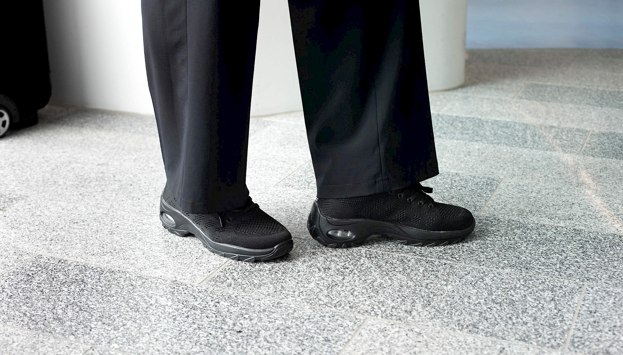 Lopulta henkilöstön edustajien sitkeän työn ansiosta hyväksyttiin kankaiset, kokomustat lenkkarit. Tähän asti työntekijät ovat itse etsineet määräysten mukaiset lenkkarit kenkäkaupoista, ja nyt uusimpana käänteenä niitä tulee myös virkapukutoimiston valikoimaan.