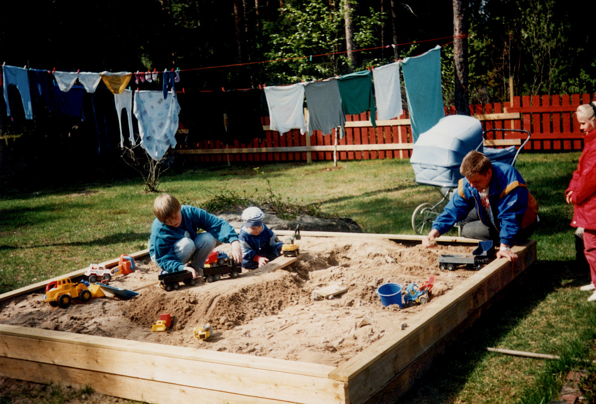 Isä ratkaisi asian niin, että vei tytöt leluostoksille. Toni olisi tottakai heti halunnut testata uusia leluja, mutta isä sanoi, että ne ovat tyttöjen autoja ja sinä et niihin koske. Nyt hiekkalaatikolla leikkii jo neljäs polvi.