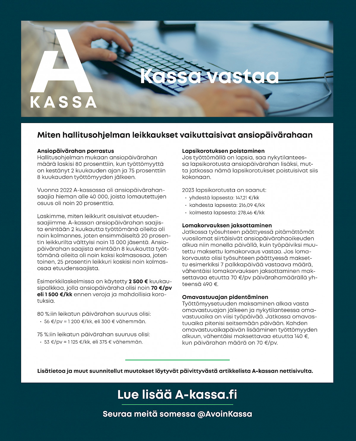 Miten hallitusohjelman leikkaukset vaikuttaisivat ansiopäivärahaan
