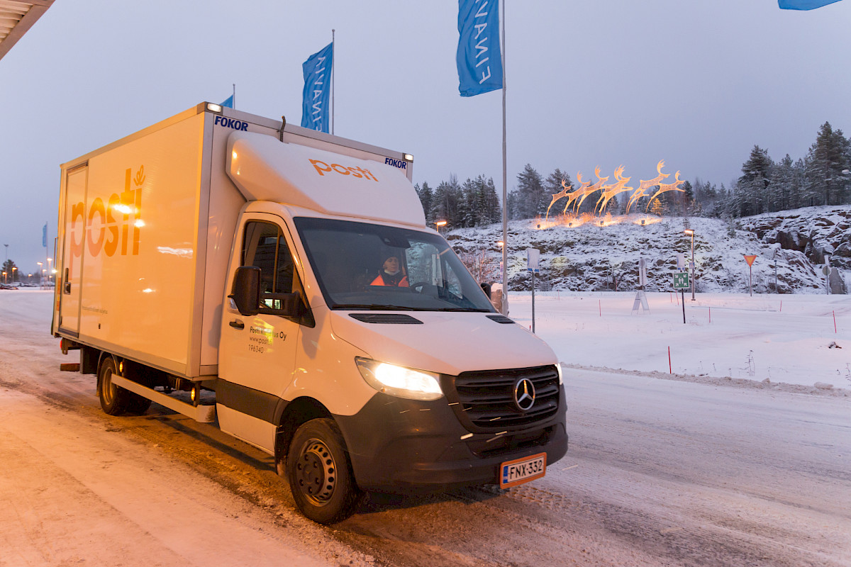 Napapiirin jouluvalot ja aukiolla soivat joululaulut jäävät taakse, kun Niskala ajelee viimeistä kertaa tälle päivää takaisin kohti terminaalia. Keli on muuttunut lempeämmäksi, ja maa alkaa jo olla valkeana. Vaikka lumi aiheuttaa postiautolle omat haasteensa etenkin ylämäissä ja mutkissa, lumesta Niskala tykkää.