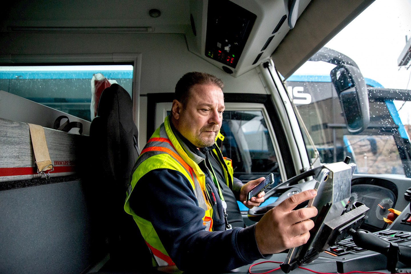 Naturligtvis kan man inte köra runt fältet hur som helst med bussen. Instruktioner och reglerna förändras också konstant, vilket innebär enorm mängd fortbildning.